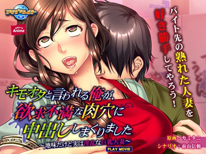アダルトゲーム(エロゲー)をより簡単に。様々なデバイスに対応したプレイムービー!!‘バイト先の熟れた人妻を好き勝手しよう!!’実年齢より若く見える容姿!地味目な印象にむっちりとしたエロい身体。そんなヒロインを描くのは新進気鋭の原画家‘カミタニ’!実用度MAX!!